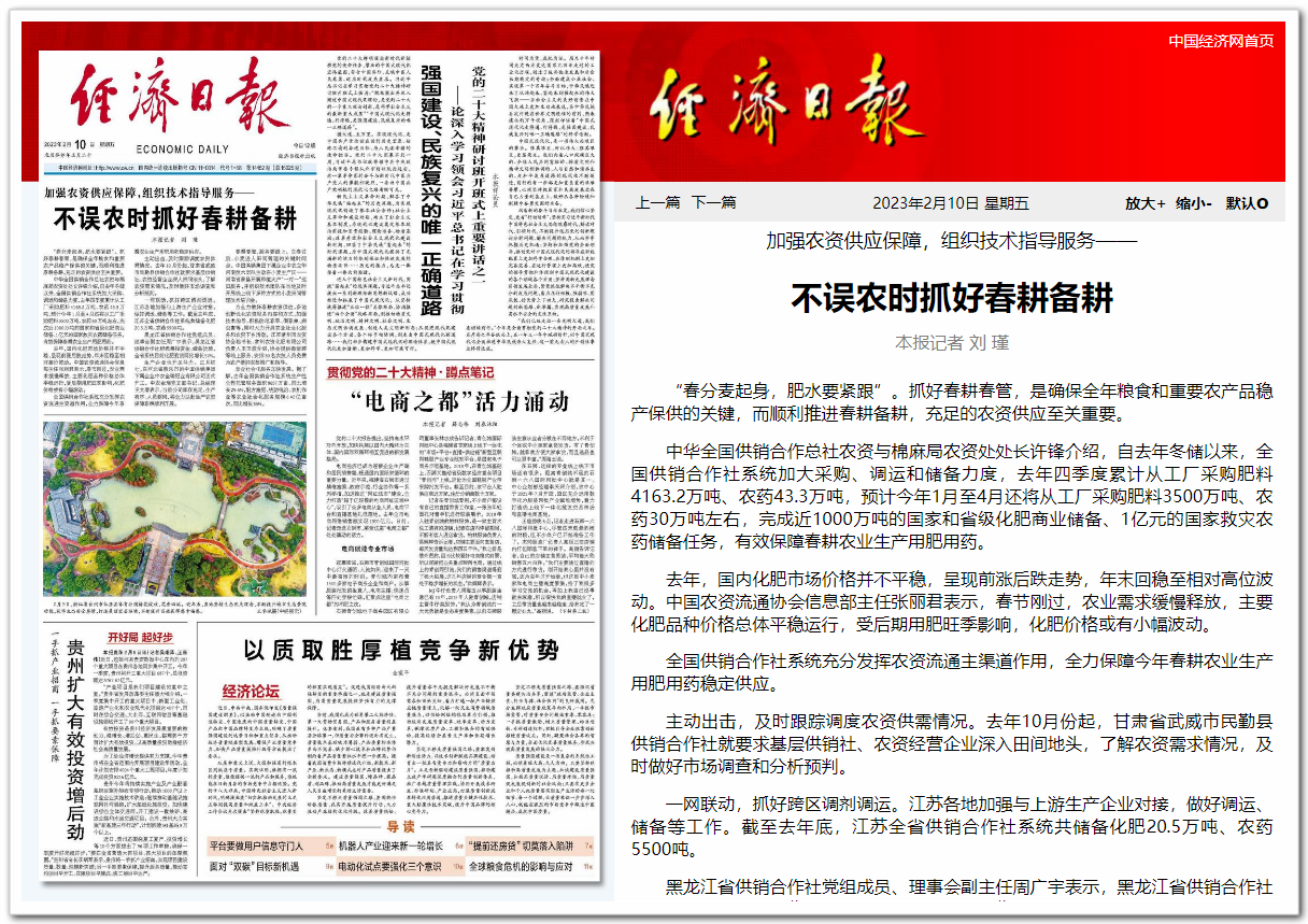 全國供銷合作社系統(tǒng)充分發(fā)揮農(nóng)資流通主渠道作用,全力保障今年春耕農(nóng)業(yè)生產(chǎn)用肥用藥穩(wěn)定供應。