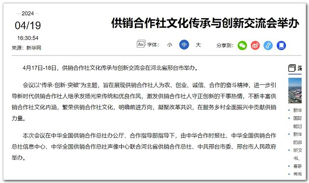 4月17日-18日,供銷合作社文化傳承與創(chuàng)新交流會在河北省邢臺市舉辦。