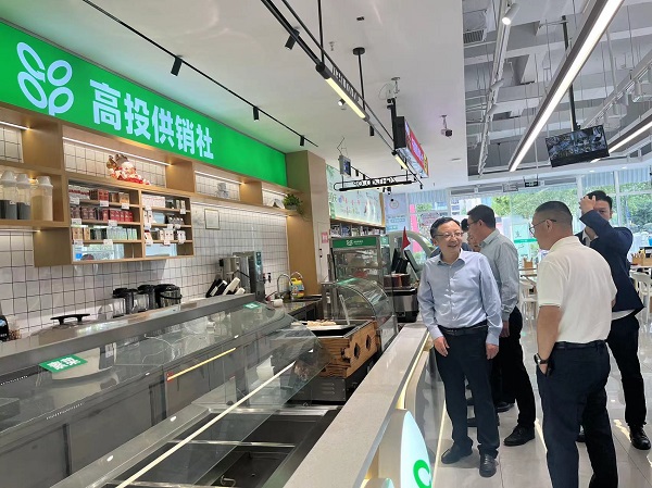 在南悅里高投供銷社,劉羽一行現(xiàn)場了解高投供銷社大食堂和生活超市經(jīng)營情況,查看超市“平昌專柜”商品銷售情況,就實施“開放辦社”戰(zhàn)略、深化綜合改革具體做法和經(jīng)驗進行了交流。