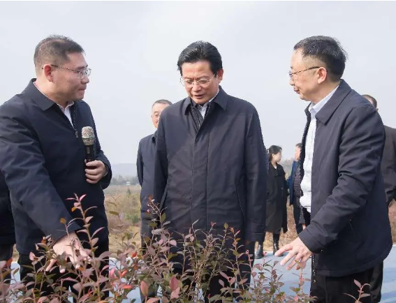在秋錦山村,蔡邦銀一行實(shí)地查看了當(dāng)?shù)厮{(lán)莓的種植情況,并就藍(lán)莓產(chǎn)量產(chǎn)值和市場(chǎng)銷售情況與相關(guān)負(fù)責(zé)人進(jìn)行了深入交流。他要求,要從產(chǎn)業(yè)培育、精深加工等方面持續(xù)發(fā)力,不斷延伸藍(lán)莓產(chǎn)業(yè)鏈,進(jìn)一步推動(dòng)藍(lán)莓產(chǎn)業(yè)轉(zhuǎn)型升級(jí),拓寬農(nóng)民增收致富渠道,更好發(fā)揮項(xiàng)目聯(lián)農(nóng)帶農(nóng)的作用,為推進(jìn)鄉(xiāng)村全面振興提供產(chǎn)業(yè)支撐。